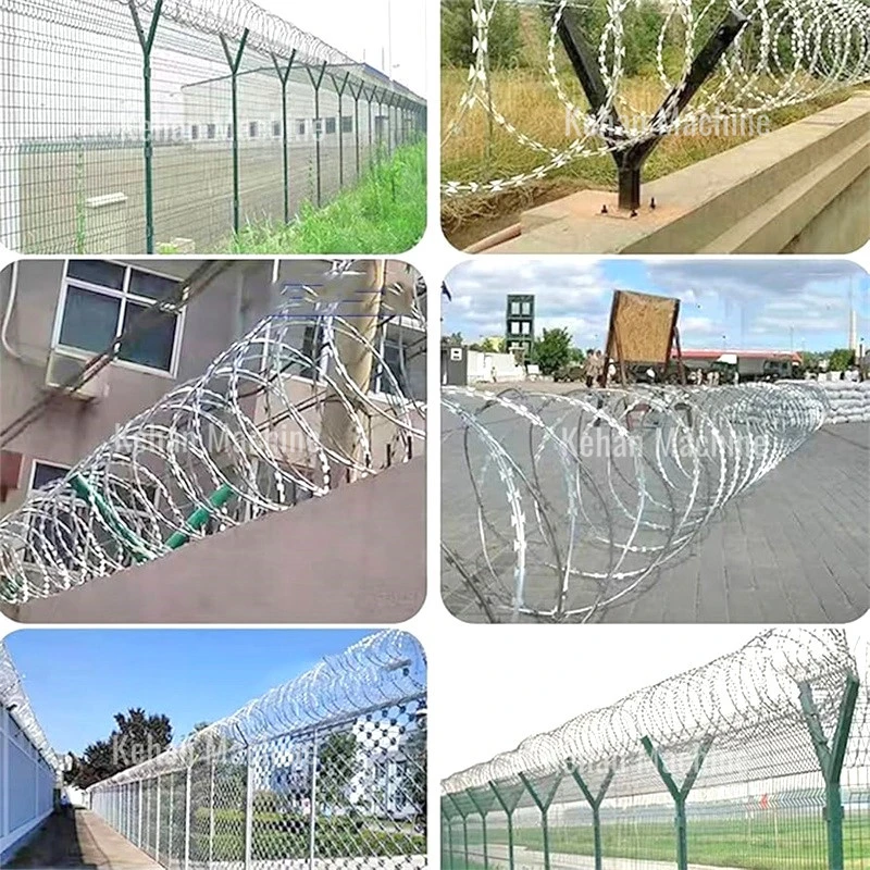 เครื่องลวดหนามแบบ Concertina Razor Wire หรือเรียกอีกอย่างว่า เครื่องลวดหนามแบบ Concertina Razor Wire เครื่องลวดหนามแบบใบมีด เครื่องลวดหนามแบบใบมีดเป็นเครื่องจักรพิเศษสำหรับผลิตลวดหนามแบบใบมีด ลวดหนามแบบ Concertina Razor Wire ส่วนใหญ่ใช้สำหรับตาข่ายรั้วรักษาความปลอดภัยต่างๆ